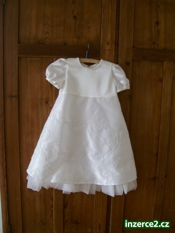 Nabízím k prodeji pohodlné šatičky pro 3. letou družičku. Šatečky jsou celé vypodšívkované, živůtek je saténový, sukýnka ze zdobeného taftu. Délka celých šatů je 65 cm, obvod přes bříško asi 60 cm. Na zadním díle je zip a kolem krčku jsou obšité perličkami. Nikdy nebyly použité.