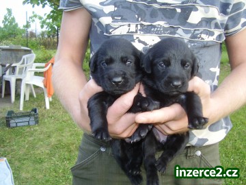 Prodám štěňata labradora bez PP. K odběru kolem 20. srpna. Štěňata budou na očkována. Oba rodiče možno vidět. Na fotce matka s otcem.
