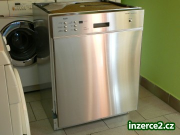 Vestavná AEG celonerezová, přední část myčky, panel s digitálním displejem.