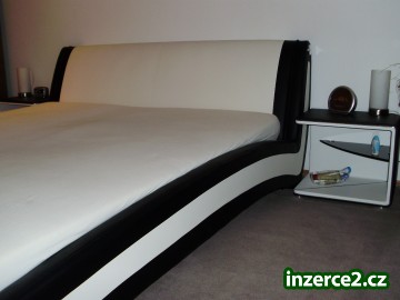 Prodám půl roku používané dvojlůžko s rošty bez matrací. Rozměr 180 cm x 200 cm, černobílá ekokůže. Původní cena 16 000,- Kč, plus rošty 3 400,- Kč. Neštastnou manipulací lehce poškozené čelo, sleva na 8 000,- Kč