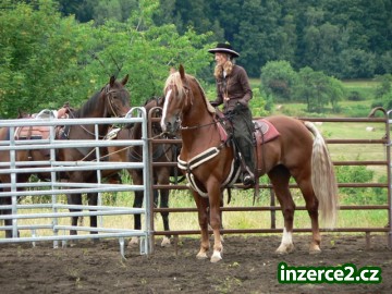 Kladrubský hřebec, narozen 2000. tahá, nosí. Ježděn ženou.
