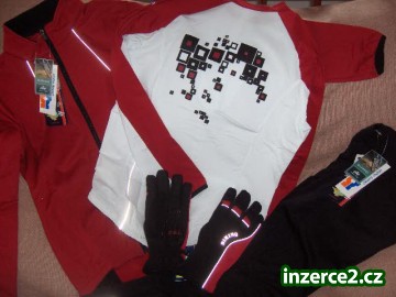 Set se skládá z dlouhých softshellových kalhot, softshellové bundy(možno použít i na běžky), cyklodresu a gelových rukavic. Barva na fotkách vypadá červená, ale je spíše do vínova. Vysoce funkční materiál udržuje tělesnou teplotu, je větru a vodě odolný, prodyšný a maximálně elastický. Bezpečnostní reflexní prvky jsou za tmy viditelné na vzdálenost 160m, což je kole velmi důležité. Dres i bunda mají prodloužená krytá záda, na zádech velkou kapsu na zip a spodní lem zakončený do neklouzavé gumy. Bunda uvnitř s jemným chloupkem. Dres má na zádech moc hezkou aplikaci. Kalhoty mají vnitřní antibakteriální vycpávku CoolMax INVISTA, zakončení nohavic se zipem a uvnitř neklouzavou gumu. V pase guma+stahovací šňůrka. Uvnitř jemný chloupek. Rukavice z vysoce funkčního mat. HIPOTEX s gelovými polštářky na dlani a na palci zvláštní materiál k utírání brýlí. Prodám i každé zvlášť. Bunda-890,-Kč Dres-450,-Kč Kalhoty-690,-Kč Rukavice 210,-Kč Při koupi celého kompletu ušetříte 250,-Kč.