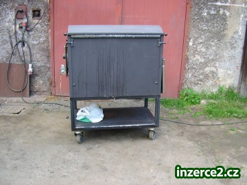 Prodám jednou použity gril, o rozměrech vnitřku delka 1OO cm, šířka 35 cm, výška 50 cm, dělaly jsme v něm krutu.