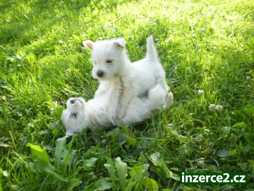 Prodám štěňáta westíka bez PP. Volní jsou už jen 2 pejsci- jsou velice milí a hraví, plně socializovaní. Naučení na granulky. Odběr možný od 12.8.2010. Nezávazná návštěva vítana.