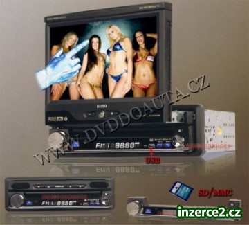 Prodám autorádio s DVD a výsuvným plně dotykovým 7" LCD monitorem (naklánění na všechny strany), BLUETOOTH, odnímatelný přední panel . Slot pro paměťové karty a USB. Přehrává všechny formáty DVD dále MP3, JPEG, WMA, MP4. AM/FM rádio s RDS. Vstup pro zpětnou parkovací kameru, zesilovač 4x50W, dálkový ovladač, vstupy pro 2 monitory v opěrkách hlavy (funkce Dual Zone - např. řidič sleduje TV, děti vzadu DVD)