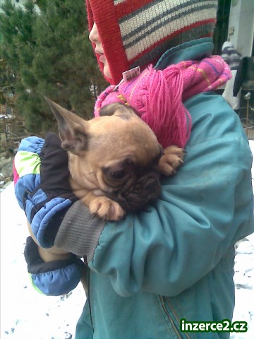 Francouzský buldoček-poslední fenka bez PP v barvě fawn a dva žíhaní pejsci se znaky,očkovaní,odčervení.Oba rodiče k vidění,zvyklá na děti a domácí zvířata,učena čistotě! K odběru ihned a ceny fawn-4500,- žíhaní-4000,- dohoda.Brno-venkov.