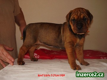 CHS Tosa Ken nabízí štěňátka narozená 19.12.2010.O:MCh.Abenji Big Luck,Evropský vítěz 2010(DLK 0/0,DKK 0/0).M:Basaki Kalabousek(DKK 0/0).Oba rodiče jsou typičtí představitelé plemene,mohutní,silné kostry,držitelé mnoha výstavních ocenění,své kvality předávají na potomky.Štěňátka mají silnou kostru,typické vrásky,jsou odchována v rodině s celodenní péčí,naučena čistotě.Odběr možný od 14.2.2011.Pouze vážným zájemcům.Chovatelský servis samozřejmostí.
