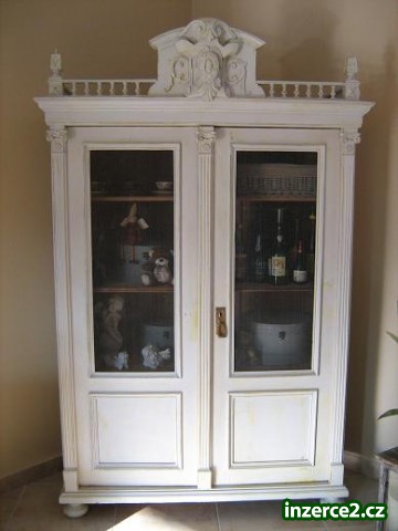 Nabízím na zakázku dělanou skříň ve stylu provence. Skříň se hodí jak do obýváku tak i do kuchyně na potraviny. Bílé barvy se stylovým ošoupáním. Uvnitř skříně 3 police a dole vetší prostor - možno dát další polici. Průhledná část dveří je vypletena kovem.