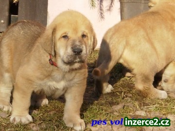 Španělský Mastin-ŠTĚŇÁTKA bez PP k odběru dle DOHODY. barvy , plavé , zlaté.Máme volné fenky i pejsky váhově vyrovnaný vrh -po RODIČÍCH S PP-Předpoklad - ZDRAVÉ KÝČLE- zárkuky jako s PP .m: je velmi vysoká 85 cm ,pěkná fena po rodičích s DKK 0/0 , s pěkným pohybem, má perfektní milou povahu , dobrý hlídač , velkej mazel. O: Vysoký ,mohutný DKK 0/1 , výstavně úspěšný chovný pes, má dobrou ,klidnou povahou , dobře hlídá .Je to obří - 70 kg -100kg , 75 - 90 cm. plemeno, je velice otužilé - celoročně venku , vhodné do rodiny k dětem i k jiným zvířatům , není agesivní , dobrý hlídač. Štěňátka od nás odcházejí ,když jsou již samostatná ,učená čistotě , socializovaná - vyrůstají v rodině .cena 12.000,kč-možná dohoda .Odčervení ,očkování samozdřejmostí.Granule do začátku a rádi vás u nás uvítáme i na nezávazné návštěvě kdykoliv -po tel. dohodě.bliž.info na mailu, nebo tel.Vých.čechy. 602 810 391