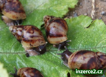 Nabizim mladata Achatina reticulata (oblovka síťkovaná), narozené Koncem Května. Mohu poslat i poštou v izolovanem baliku, nikdy nebyl problém a šnečci dorazili v pořádku. Osobní předání v Praze, Roudnici nad Labem čí Kralupech nad Vltavou po dohodě možné. Cena15Kč za kus. Achatina je zvířátko vhodné k dětem a to i pro alergiky, dorůstá kolem 20cm proto je tak oblíbená na stravu není nijak náročná, stačí jí pampeliškoví list a sepiová kost.