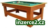 Prodám kulečník karambol 180 x 90cm s kombinací s jídelním stolem,krycí desky, nový se zárukou, v provedení calvados, kvalitní zelené plátno,levně.