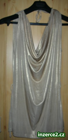 Zlaté, elastické a dlouhé elegantní tričko k legínům. Se zavázáním za krkem. Nepoškozené, nové.