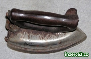 Stará elektrická žehlička, pochromovaná, drobná koroze; el. napájecí šňůra. Cena 50,-Kč + poštovné, dohoda.