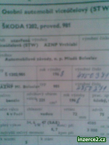 Doklady na ŠKODA 1202,provedení 981 (STW), r.1968 SPZ