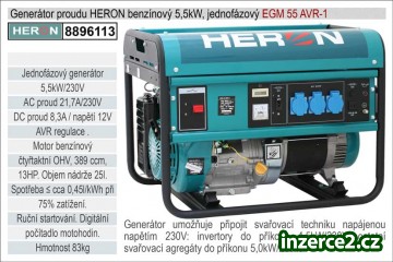Generátor proudu HERON benzínový 5,5kW, jednofázový