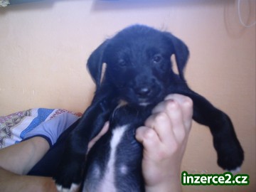 Daruji dvouměsíční štěně křížence malého vzrůstu.V dospělosti vel. 30cm.Je černé barvy s bílýma packama a náprsenkou.Jen do dobrých rukou.