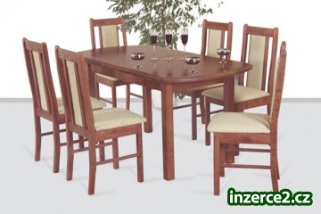 Prodám stůl 80*160/200 cm+6 židlí-výběr typu židlí,barvy dřeva a potahů.Samostatné židle,rohové lavice.Krátké dodací lhůty,doprava po celé ČR.