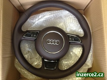 Prodám úplně nový sportovní volant a Audi A8 v hnědé kůži v originál krabici.