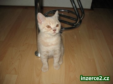 Hledáme nový domov pro britského krémového kocourka. Iwanhoe je 3,5 měsíční kocourek s průkazem původu, 2x odčervený a plně očkovaný, vhodný jako mazlíček případně i do chovu. Odběr možný ihned s malou výbavičkou a krmením cca na 14 dní.