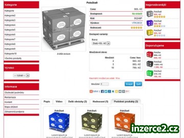 ESHOP NA PRODEJ ZBOŽÍ JEDNODUCHÝ A VÝKONNÝ RYCHLÁ KOUPĚ = SLEVA! Eshop a jeho funkce: jazyk eshopu: čeština seo adresy (hezké url adresy): ano měna: česká koruna, euro dopravy: česká pošta, ppl, doprava zdarma, osobní odběr, dle váhy, za položku platby: bankovní převod, dobírka, platba při převzetí, paypal dph: eshop je vhodný pro plátce i neplátce dph slevy: ano množstevní slevy: ano import / export zboží: ano (XLS) zákaznická podpora: ano Další funkce eshopu: přehled registrovaných zákazníků přehled objednávek náhled a tisk faktur tisk adresních štítků záloha / obnova eshopu vkládání textů / obrázků na úvodní stránku hodnocení zboží značky nejnovější zboží nejprodávanější zboží doporučené zboží ankety slevové kupóny … a další. V ceně eshopu jsou tyto služby: instalace eshopu, nastavení eshopu, nastavení databáze, jednoduchá změna barev šablony … rady do začátku. ZAKOUPENÍM JE ESHOP JIŽ NAVŽDY VÁŠ! NIKDY NIC UŽ NEPLATÍTE! Více info na emailu!!!