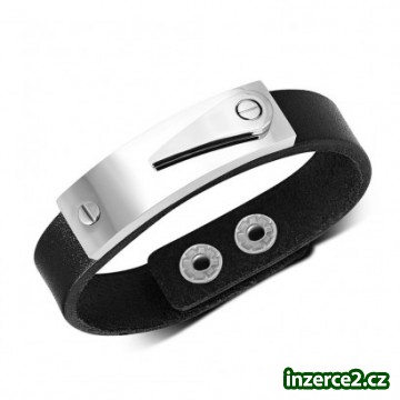 Stylový kožený náramek na ruku s destičkou . Materiál syntetická kůže. Šíře náramku je 16mm a délka 23cm. V nabídce na Marre. V případě zájmu o koupi nebo dotazů mi volejte na uvedené telefonní číslo.