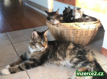 Mainská mývalí kočka - koťátka (kočky i kocouři - černá stříbřitá a hnědá mramorovaná) za výhodnou cenu, odběr v říjnu. Bližší info a rezervace možná na email nebo telefonicky.