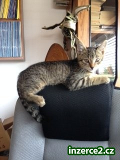 Evropská kočka domácí. Daruji 2 roztomilá mourovatá koťátka, narozená 18.5.2019, kocourka a kočičku.